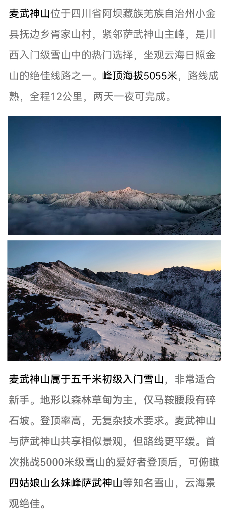 1.交通:成都出发根据人数选择合适车型,一人一座,胥家山村-麦武神山大本营中转车。